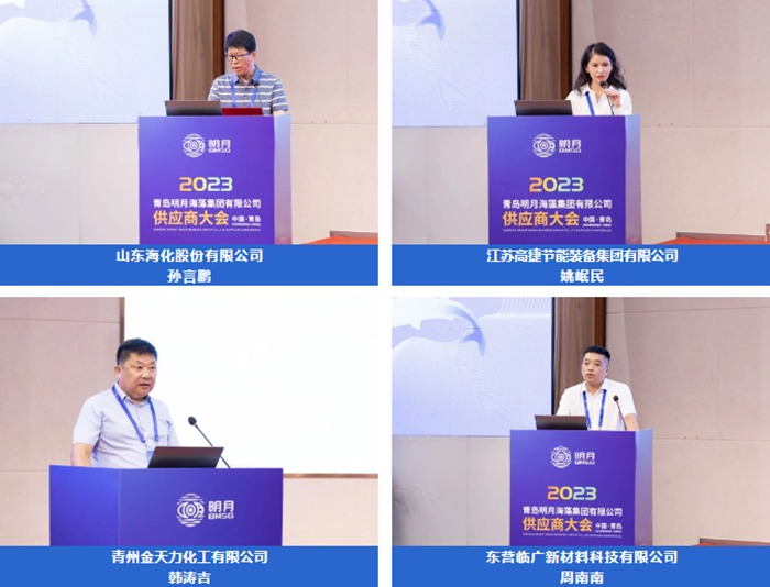 山東海化股份有限公司孫言鵬、江蘇高捷節(jié)能裝備集團有限公司姚岷民、青州金天力化工有限公司韓濤吉、東營臨廣新材料科技有限公司周南南幾位供應商代表上臺分享“他們和明月的故事”。通過他們的講述,讓大家全方位、多角度地了解了一個充滿情懷與溫度的多彩明月。