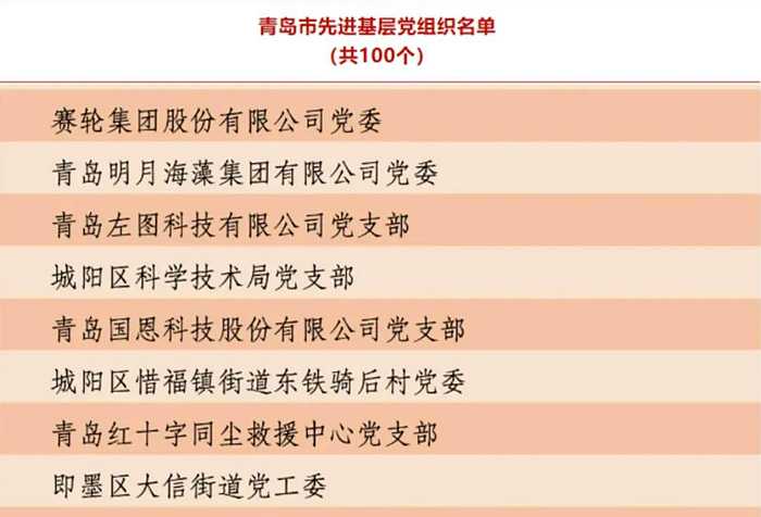 日前,《中共青島市委關(guān)于表彰青島市優(yōu)秀共產(chǎn)黨員、優(yōu)秀黨務(wù)工作者和先進基層黨組織的決定》發(fā)布,青島明月海藻集團有限公司黨委榜上有名,獲評“青島市先進基層黨組織”稱號。