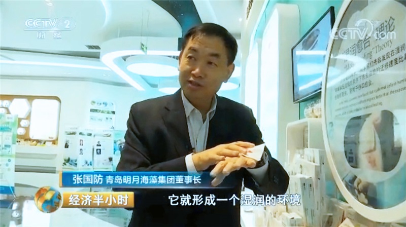 青島明月海藻集團董事長張國防:現在很多的排鉛食品,排重金屬的食品都用了我們海藻酸鈉與重金屬結合的原理。